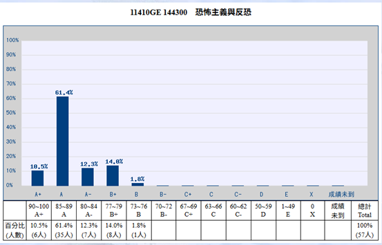 而教授也鼓勵我們在群組內分享恐怖主義發展相關新聞,這也會記入平時考量之內。 雖然教授有時在課上會小小抱怨我們貼的內容,但也不會因此刁難人或不給分。