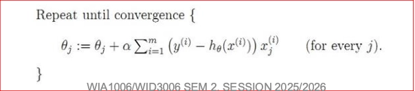 in the direction that reduces the most (the direction of steepest descent). - Repeat until convergence. The update rule is:
