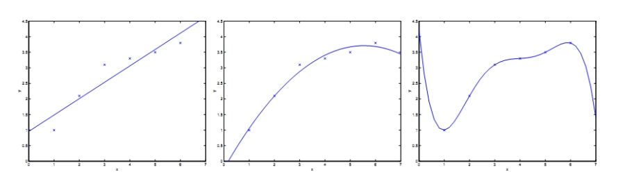 ) fits better, capturing more structure. - A 5th-order polynomial passes through every data point perfectly, but it would make terrible predictions on new data. This is overfitting.